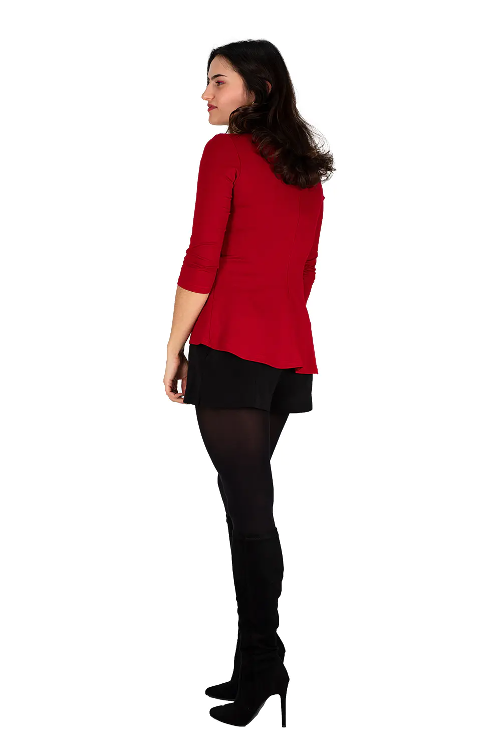 Schwingendes Tanzkleid Sabina mit langem Arm in Rot, von Vorne