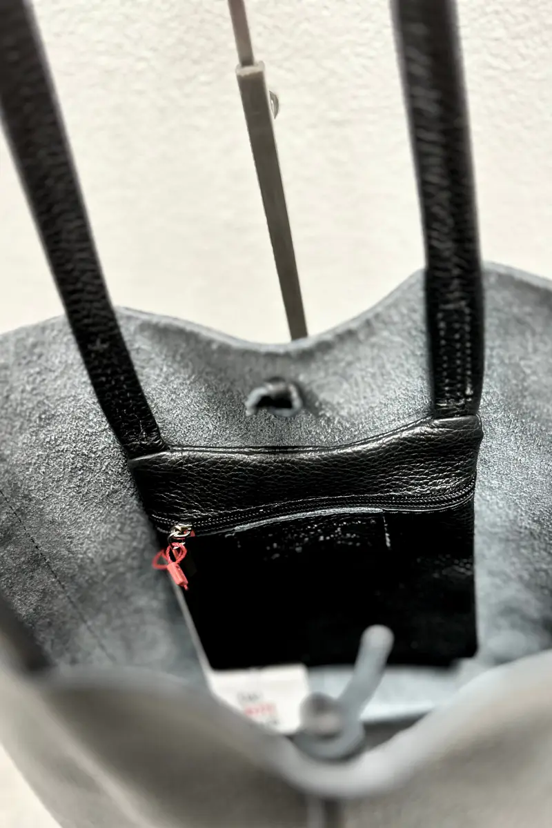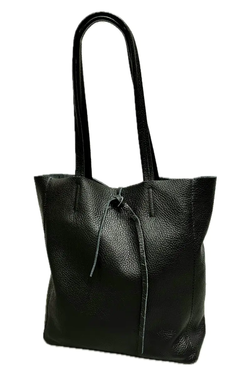 Schlicht und schön, unser kleiner Shopper aus echtem Leder. Die lässige Alternative zur Handtasche.