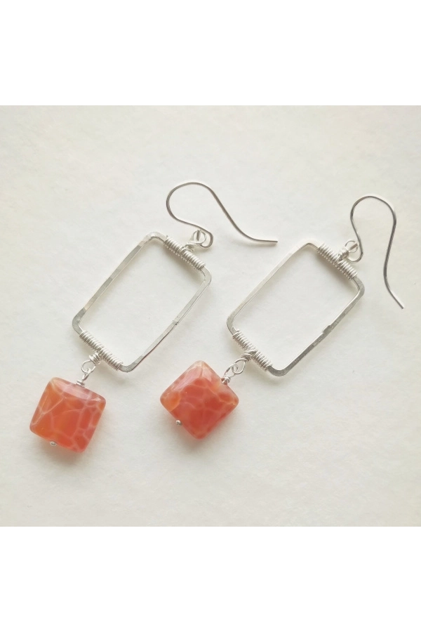 Vertikale Rahmen Ohrringe • Feuerachat 2